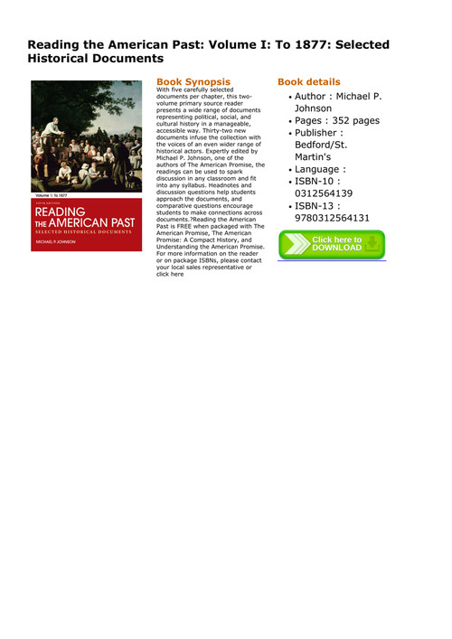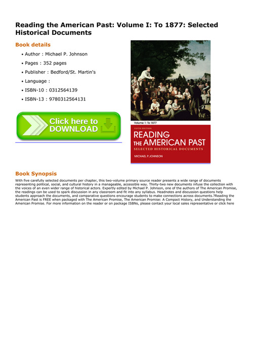 Free Download Epub Reading The American Past Volume 1